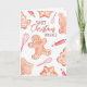 Handmålade vattenfärgat gingerbröd på ett julkort med bakverk. På detta vackra kort står det "söt jul-önskemål". Perfekt till en vän, kom ihåg eller en speciell person. Det här kortet är underbart för en större person eller någon som kärlekar julkakor och sötsaker. Skicka det här kortet den här julhelgen eller ge som en gåva.