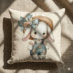 Denna fantasifulla design presenterar en oemotståligt söt vit kanin iklädd charmiga denim-overaller, prydda med pastellfärgade tygfläckar och matchade med en skrynklig blus. Kaninens stora halmhatt, detaljerad med ett drömskt blått band och en delikat klunga handritade blommor, tillför en vintage cottagecore-känsla. Mjuka, måleriska texturer och varma, dämpade färger förstärker den övergripande mysiga och nostalgiska estetiken, perfekt för dem som älskar söta, saga-inspirerade bilder. De uttrycksfulla ögonen och den milda rodnaden ger kaninen en hjärtlig personlighet, vilket gör den till ett vackert tillskott till barnkammarteman, vårdekorationer eller säsongsbetonade presenter. AI-gener