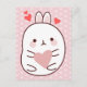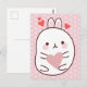 Söt vit kanin och rosa kärlekshjärtan, vykort.