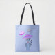 Unik väska med en söt katt i hatt och flygande tefat endast på framsidan på stjärnblå bakgrund. Den himmelska katten är i ljusblå färg och bär en violett hatt.