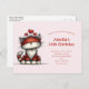Födelsedagsinbjudan vykort med en fantasifull teckning med en stor orange röd kattunge.