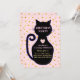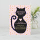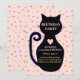 Söt katt och gyllene prickar på rosa bakgrund födelsedagsinbjudan. All text och alla nummer är redo att anpassas.