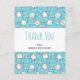 Tack-kort med ett sött kattmönster, placerat på en blå bakgrund och dekorerat med regnbågar och tassavtryck med mera.