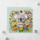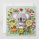 Den här koalajulkortet är perfekt för alla tillfällen! Kortet har en söt grå koala omgiven av en färgrik samling blommor och blad, vilket gör det till en trevlig present till dina nära och kära. Den lekfulla designen och de livfulla färgerna kommer säkert att ge en leende på någons ansikte! Kortet är tillverkat med intrikata detaljer, och koalan har stora runda öron, gröna kinder och håller en blomma. Runt koalan finns en samling färgglada blommor och blad gjorda av olika material som ger dem ett texturerat utseende. Det finns också små hjärtan utspridda bland blommorna och bladen. Hela arrangemanget av koalan, blommorna och bladen är placerat mot en mjuk grön bakgrund som kompletterar fär