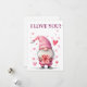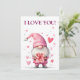 sött kort med en tecknad rosa tomte i kärlek med ett hjärta för högtiden i februari på Alla hjärtans dag