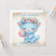 Dekorativ illustration med en blå kattunge som håller en färgglad lollekollipop och bär en blomkrona. Mjuka pastellfärger och mjuka detaljer skapar en söt, lekfull och glädjefull visuell stämning.