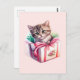 Sött litet Kattunge i en Presentlåda till Födelsed Vykort