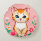 Sött litet kattunge med blommor rund kudde