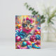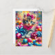 Sött födelsedagskattunge som leker med band och slingor. Färgrik rosa och blå AI-konst.