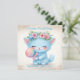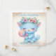 Dekorativ illustration med en blå kattunge som håller en färgrik suckerspinn och bär en blomsterkrans. Mjuka pastellfärger och mjuka detaljer skapar en söt, lekfull och glädjefull stämning.