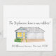 Den här söta annonskortet har en vacker akvarellillustration av ett modernt hus med en våning i blått och vitt. Du kan ersätta den med en uppladdad bild av ditt nya hem (transparent eller vit bakgrund föredras). Grå handstil visar familjens namn och den nya adressen. ⚠ Detta konstverk är handritat av JessicaAmber och är 100% fritt från AI ⚠ ••• För fler illustrerade kort, besök min butik Zazzle.com/EventsByJessicaAmber ••• För skräddarsydda beställningar och redigerad grafik (t.ex. om du vill ha det här kortet med ett rött hus istället) kontakta mig på Zazzle