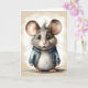 Sött Mus Blå Jacka Porträtt Tomt Grattis Kort