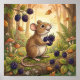 Träd in i en fridfull skogsdream där varsamma djur vandrar genom varma skogar, bäckar och gyllene löv. Denna fantasifulla saga-illustration av en söt mus som håller bär ger en mysig sagostämning till barnkammare, barnrum och tysta läshörnor.