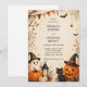 En lekfull och stämningsfull design inspirerad av höstfirande, med charmiga illustrerade element som pumpor, en nyfiken svart katt, en vänlig spöke och fantasifulla dekorationer. Varma jordnära toner och mjuka texturer skapar en mysig säsongsbetonad känsla, medan detaljer som lyktljus, fladdermöss och lövverk tillför djup och berättande. Kompositionen blandar söta och kusliga estetiska element i en balanserad, inbjudande och visuellt engagerande design.