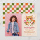 Dessa söta flickors födelsedagstack-kort har en handritad retro-katt som bär solglasögon, tillsammans med blomsterelement (inklusive tusenskönor) och stjärnakcenter. Retrotypografi lyder "Tack". En färgpalett med rosa, orange, dämpad guld och olivgröna toner bidrar till den retro-/vintageinspirerade looken! En fotomall och textmallar ingår för enkel anpassning. Baksidan har ett matchande rutmönster. *Illustration och mönster av Tracey Khalei / Orabella Prints.