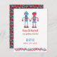 Ett sött par röda och blå robotar och kugghjul i varierande storlekar pryder denna avvikande bröllopsinbjudan serie. Denna design är perfekt för par som vill ha något unikt och minnesvärt för att tillkännage sin fest.