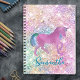 Gör skolstart rolig med den här söta personliga anteckningsboken. Den är designad med eleganta, flickiga iriserande glitterdroppar i enhörningsregnbågens rosa färger.