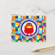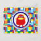 Sött rött monster på färgglada lapptäckenblock vykort