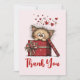 Tackkort med en söt teckning av en liten kattunge som sticker ut huvudet ur en presentlåda.