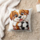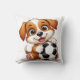 En konstnärlig serieillustration av en lekfull valp som omfamnar en fotboll, med ett sött och engagerande uttryck i en ljus miljö. Perfekt för kreativa projekt med sport- eller lektema.