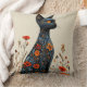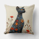 Sött svart katt och blommor kudde