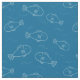 Enkel och söt fiskmönstrad tygstycke per yard. Havsblå botten är fylld med söta små fiskillustrationer och tunna virvlande våglinjer. Fint tyg för ditt sjörelaterade sy- eller hantverksprojekt.