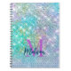 Sött turkost enhörningsfalskt glittermonogram anteckningsbok