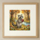 Träd in i en fridfull skogsdrom där milda djur vandrar genom varma skogar, bäckar och gyllene löv. Denna fantasifulla sagobokillustration av en söt tvättbjörn som samlar bär ger en mysig sagostämning till barnkammare, barnrum och tysta läshörnor.