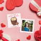 Det här moderna och ljuva Alla hjärtans dag-fotokortet har en blekens rosa bakgrund med en söt illustration av uggla. Hälsning på framsidan säger: "Du är en riktig hoot!" Kortets baksida har samma bakgrund för rosa av blek och ett fyrkantigt foto, som också kan tas bort om så önskas. Den här lilla storleka är perfekt för alla hjärtans klassrumsutbyten!