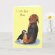 Den söta bilden av en valp beagle som kramar sin mamma är så förtjusande, uttrycket i valpens ögon är oemotståndligt, han har så mycket tillit och kärlek till sin mamma. På framsidan av kortet har jag lagt till orden “Jag älskar dig mamma” eftersom jag är säker på att det är vad den lilla valpen tänker på sin tillgivna mamma. En bedårande beagle-valkmåling som ser bra ut på detta vykort, jag är säker på att alla mammor som inte kan motstå en söt bild på ett djurvalp kommer att älska att få detta kort på speciella dagar, mors dag, födelsedag etc. Men det behöver inte vara en speciell tillställning för att låta din mamma veta hur mycket du bryr dig, kanske du bara vill tala om för din mamma hur mycket hon betyder för dig. Den enkla känslan inuti kortet säger allt. Den ursprungliga hundporträttet är målat i akvarell. Om du är intresserad av att beställa ett husdjur-porträtt till dig själv eller som en speciell present till någon, tveka inte att mejla mig för ytterligare information. Jag ser fram emot att "chatta" med dig:) Om du är