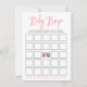 Bingo-jaktkort för spädbarn med "Baby Bingo" överst i ett vismiskt rosa-skript med vattenfärg grått och vit katt med krona av rosa blommor som mittpunkt. Anpassa till mamma för att vara namn och babydusch längs grund. Designkoordinaterna med vår sötvattenfärgssamling i Kattunge.