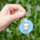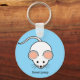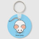 Sött vitt mus tecknat och kalligrafi på ljusblå nyckelring-