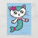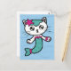 En söt sjöjungfru-kattkort för barn! Handdragen av mig