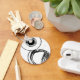 Sousafone teckning i svart på vit bakgrund, runda nyckelkedjor
