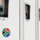 Södra Afrikans flagga har varit försiktigt passande till denna magnets cirkulär. Ett dekorativt sätt att främja sydafrikansk kultur.