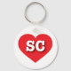 Den här nyckelringen har ett pulserande rött hjärta som innehåller det feta, vita, övre fodral brev SC, förkortningen officiell för South Carolina, Palmetto-staten.