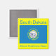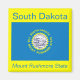 En autentisk bild av brans kvalitet i flagga av South Dakota mellan delstaten namn och smeknamnet över flagga-färg.