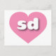 Det här vykortet har en lugn, coola rosa hjärta som innehåller det feta, vita, rundade nedre brev sd, en lekfull förkortning för South Dakota, Mount Rushmore-tillståndet. Baksidan av vykortet är tom och väntar på dina handskrivna känslor eller anpassade texter.