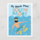 En rolig South Padre Texas serie stil resebild med en hipster snorklare under vattnet. I blått orange och turkos.