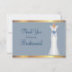 Skicka ett speciellt Tackkort till dina brudtärnor med det här sydliga kartkortet med ditt personliga meddelande. Kortet är designat i blått med gyllene färgader och vit text. Fronttext innehåller: Tack för att vara min Bridesmaid, och omvänd text omfattar: Bride och Grooms första namn och Ditt meddelande. Om du vill anpassa dig infogar du bara dina uppgifter i vår enkla mall och ersätter exempeltexten.