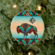 Anpassa den här "en av en typ", sydvästra Buffalo-julprydnad! Den har sydvästra Buffalo och Sol på turkos och Orange Sunset Background ...omgiven av turkos, Orange och svart Gräns! Original Art Design by Artist Kerry Miller.