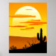 Poster i ett minimalistiskt, modernt landskap i sydöstra öknen och ökenplantorna, i skuggor av orange, gyllene gulter och bruna