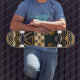 Häxor Hammer skateboard design, sydväst Native American Indian skateboard design, tribal skateboard indisk design, afrikansk tribal skateboard, extremsport skateboard, Virginia Vivier designer skateboard, brun, tan, svart skateboard.