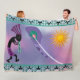 Petroglyph Kokopelli. Mata ut Silhouette-färgämnet Kokopelli Blanket. Alien eller Vad är Kokopelli Fleece Blanket? Den inhemska amerikanska sydvästra Abstrakten Kokopelli Cave Petroglyphs sovrumsfilé. En kombination av fjädrar och levande färg som du kan ändra för att matcha din rumsdekoration. Kokopelli är en fertilitet gudom, en humpbackad flute-spelare som vinner inhemska amerikanska kulturer. Tillskrivs gamla utomjordingar eller stamkonst och inspireras av grottan och sten teckning. Underbar presentidé för dem som kärlek sydvästra Petroglyph-dekorationen och planetens gamla mystiker.