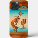 Anpassa den här unika "en av ett slag", sydvästra Kokopelli Cell iphone case! Den har en koppar från sydvästra Kokopelli som spelar Flute och dansar runt en kaktus under Sol...På en turkos och Orange Sunset Background ...omgiven av Copper Gräns!!! Original Art Design by Artist Kerry Miller.