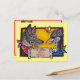 Det här söta souvenir-kortet lyder: "Hej! från NEW MEXICO" på en rustisk banderoll och har två av de populäraste varelserna i sydvästra öknen, en coyote och en väggarinna, som båda bär färgstarka bandaner. Lite orange-fjäril skickar också hälsning! Bakgrunden är solig gult. Det finns en mindre kopia av teckningen i bakgrunden, med gott om utrymme för en handskriven anteckning. Perfekt för vem som helst, vilken ålder som helst, som kärlek sydvästra stil! Nyfiken, unik akrylisk teckning och design av Tuzi Williams.