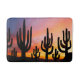 Bath Mat decorative bathroom amenity and home furnishing decor accessory printed with a Southwestern Desert Landscape Cactus Sunrise Image mixed media graphic art design illustration by TheFabricSeal at Zazzle #ZazzleMade https://www.zazzle.com/store/thefabricseal