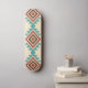 A Southwestern-style geometric pattern featuring layered diamond shapes in warm terracotta, deep brown, and cool turquoise tones. The distressed texture gives it a vintage feel, while the symmetrical layout adds a clean and modern touch.