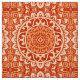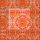 Southwestern/Aztec inspirerat tyg för batiktextildesign i ett solvisartavla-/mandalamönster - djup korallorange och pastellorange som betonas med tangerinen