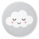 Gullig för barn för dörrknopp som presenterar en tecknadillustration av en lycklig och ett innehåll, vitmoln som sovar på en grå bakgrund. Neutraltfärger. Ideal för pys eller flicka barnkammare/barnrum.